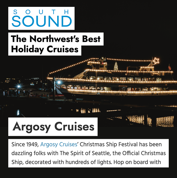 Our integrated PR approach has fueled a significant rise in brand awareness and engagement for Argosy Cruises, the result of consistent local, regional, and travel media coverage and a refreshed narrative around the brand’s legacy and offerings. This included securing more than 200 positive media placements in a diverse mix of publications, including top-tier travel outlets such as National Geographic, AFAR, Fodor’s Travel, and locally in FOX 13 Seattle, The Seattle Times, Seattle Refined, Visit Seattle, ParentMap, Secret Seattle, and many more. Through targeted campaigns, we’ve showcased Argosy’s unique Seattle perspective, iconic seasonal events, knowledgeable captains and crew, and the authentic Northwest experience that sets the company apart, strengthening both local and visitor interest in their experiences.